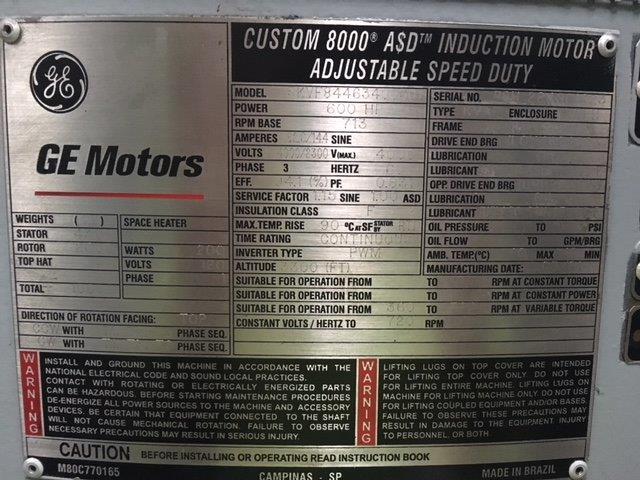 NEW 600 HP, 713 RPM, 4000/2300 VOLT G.E. ELECTRIC MOTORS