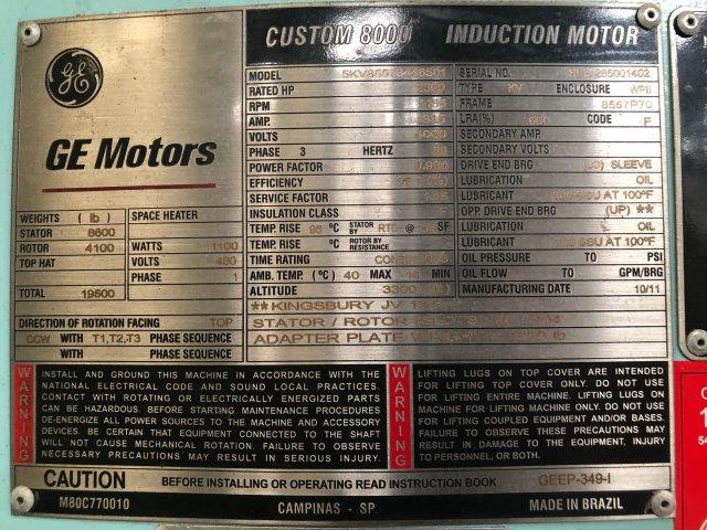 NEW 2500 HP, 1185 RPM, 4 KV G.E. 8557P70 ELECTRIC MOTORS